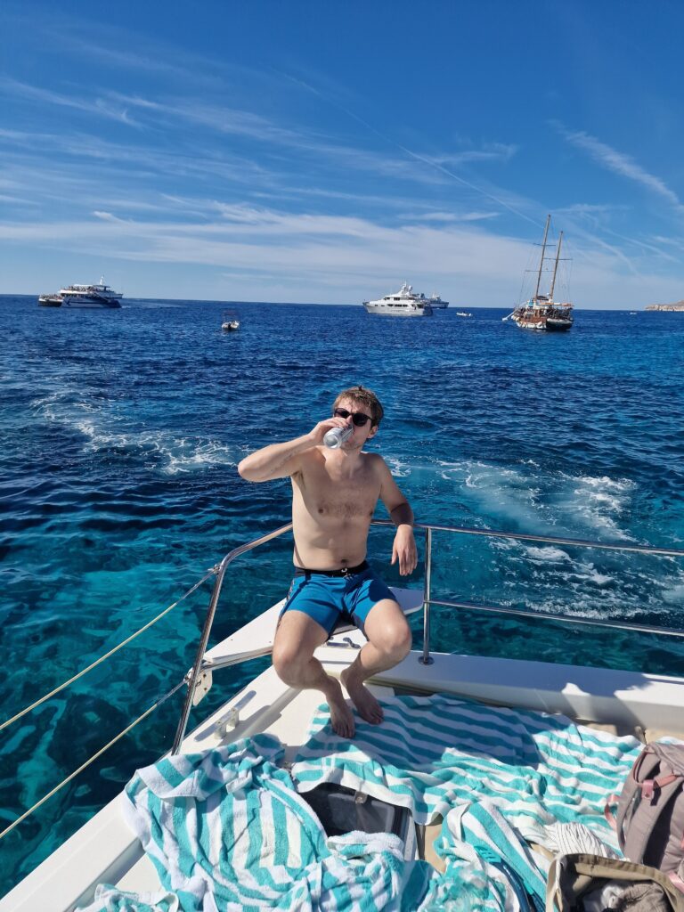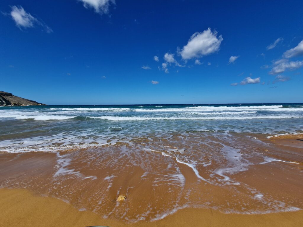 Despite these vehicular hiccups, the buggy did its job, rattling us between beaches and coves that felt largely untouched by mass tourism. Gozo’s coastline is rugged and often dramatic, particularly in the north, where the land drops sharply into deep water. This became grimly apparent at Ramla Beach. As we arrived, emergency services rushed past us with increasing urgency: coastguards, paramedics, and finally police officers, their expressions suggesting that things had not gone well. We thought it best to turn around and find a different beach, later learning that a Polish parent and holidaymaker had been caught by the strong surf and drowned shortly before our arrival. It was a stark reminder of the perils of sea swimming, especially on Gozo’s infamous northern coastline.