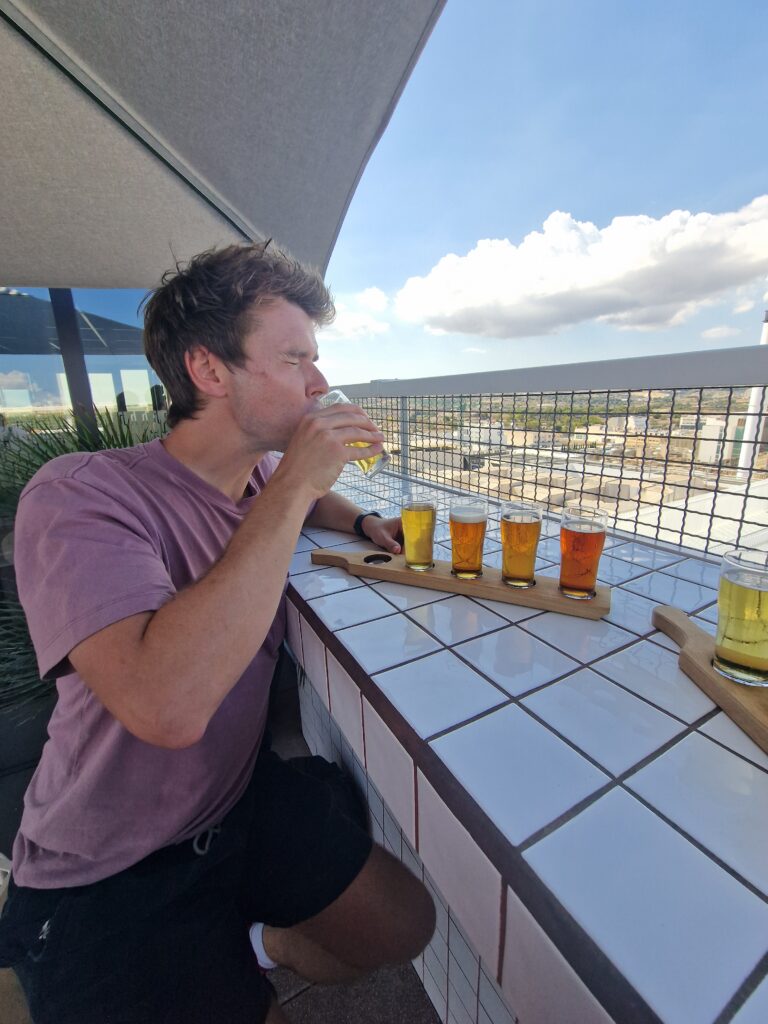 For our final day, we wanted to witness as much of the island’s other charms as we could, which meant utilising the unmatched efficiency of a Big Red Bus. Our first stop, unsurprisingly, was the Cisk Brewery, ostensibly to admire its fantastic Art Deco façade, of course. Following a wee sample on the roof, we then moved inland to Mdina. The fortified jewel of Malta, it was its capital during antiquity and the medieval periods, although its population never spread beyond its ancient walls, remaining under three hundred to this day. Its narrow streets and honey-coloured stone buildings reflect layers of Roman, Arab, Norman, and Baroque influence, though navigating them required the patience of Saint Publius due to the density of enthusiastic tour groups.